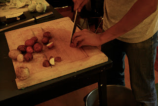 Monday evening was the first official Orchard Garden workshop and I'm happy to say it was a huge success. An intimate and eager group of eight participants was led by Leanna and Natasha in pickling and canning their own freshly picked beans from the garden. The workshop included a bit on the history of preserving food as well as the connections to the local food movement. Canning is a great way to enjoy the Summer harvest on dreary Winter days, as well as facilitate a special group activity leading to homemade gifts. I was a total novice at it, (and still am, I'm afraid, as I was wielding my camera more than a knife), but I'm inspired to embark on this tradition and teach others.