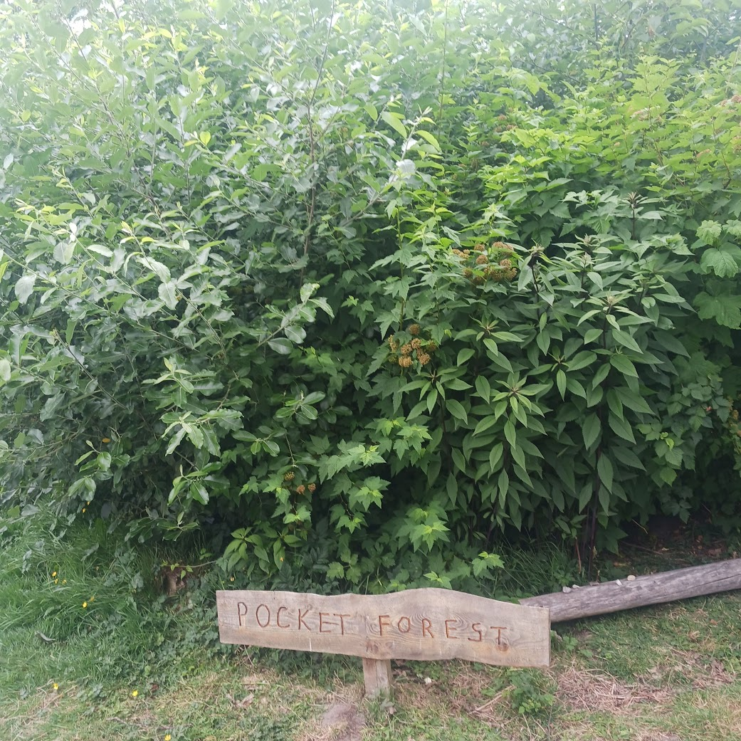 Today, we had the chance to check out some really interesting Miyawaki forests with the CFE group. For those who don’t know, Miyawaki forests are mini-forests that are planted super densely. They are often 100 square meters in size and are packed tightly with native plants. Each square meter includes one big canopy tree and at least two smaller plants or shrubs. They dig down a meter to loosen the soil before planting and then mix it with compost before putting it back in. We learned that plants grow way faster this way than in typical forests because the plants' roots can quickly reach ground water in the loosened soil and they shoot upwards rapidly as they compete for sunlight with all the other plants. Everyone we met was so knowledgeable, and they're all doing awesome things in Richmond schools to create ecologically diverse, beautiful, and educational spaces. We learned so much and had an amazing time exploring these awesome mini-forests!
